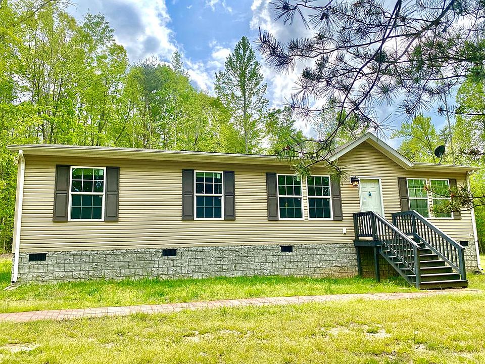 This 2016 energy efficient off-frame modular home situated in a rural setting is tucked away on 9+ acres with a creek and pond site, ample room for the kids or your pets to romp and play. The backyard has a patio and fire pit which is perfect for viewing the stars at night or watching the deer play in the yard and listening to the tree frogs. The home offers an abundance of space and an open floor plan that features 4 bedrooms including the master suite, 2 baths, a living room which opens up into an eat in kitchen with plenty of cabinets and counter space and is separated from the living room by a breakfast bar. The master suite has a large walk in closet and double vanity in the bathroom. There is an outbuilding for storage that completes this total package. Come and enjoy this relaxing country lifestyle....call to schedule your appointment today!