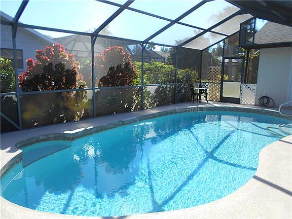 Price Reduced ! Desirable location, established community so close to beaches, retail, dining and all you need. Enter into home through tiled, screened front entry. Home has separate, formal large living room and dining area with French doors. Kitchen offers eat-in area and breakfast bar. Open, bright, spacious family room off kitchen has sliders leading to lanai/pool area. Master bedroom also offers sliders leading to pool area. Guest bathroom has door access to pool area. This well maintained pool home offers a very spacious lanai and pool area with outside bar area with sink that is great for entertaining guests. Tasteful pavered driveway adds nice curb appeal. Pool resurfaced in 2008 as well as pool deck redone. Water heater replaced in 2010. New roof in August. Lawn irrigation system. Add your personal touches and call this home. Bring offers!