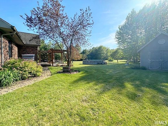 Welcome to this stunning custom-built brick home located in the desirable Northwestern school district. Featuring an open concept main living area with vaulted ceilings and a cozy gas log fireplace, this home is perfect for modern living. The spacious master suite offers a luxurious retreat with a jetted tub, separate walk-in shower, and a walk-in closet with built-ins. The kitchen boasts a convenient breakfast nook with great natural light. Upstairs, enjoy a bonus room equipped with a home theater system. Additional storage is available in the large attic above the three-car garage and a large shed on poured slab in back. Outdoors, relax under the pergola and explore the partially wooded yard spanning almost 3 acres. This home is a perfect blend of comfort and elegance. Updates include AC 2022 and Refrigerator 2021.