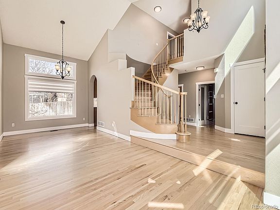 Welcome to 5843 S Danube Street, a 4 bedroom 3 1/2 bathroom home in the sought after Tuscany Community. As you walk into the house you will immediately see the hardwood floors that are throughout the first floor and the hardwood stairs on the swooping staircase. Both the living room and dining room have vaulted ceilings, both with large or bay windows and remote controlled window shades. The eat-in Kitchen has granite countertops, newer cabinets and stainless steel appliances. The Family Room has a gas fireplace with a brick surround. The 1st floor Bedroom with walk in closet (may be used as office) is enhanced by a completely updated Bathroom with new shower and tile walls and floors, granite counters and new lights. As you go upstairs you will find a large primary bedroom with attached sitting room with built-in book shelves. The Primary bathroom has been remodeled with a 5-piece bath with glass shower, soaking tub and granite counters. The upstairs has two additional bedrooms and another completely remodeled bathroom with double sinks and cabinets, granite counters and modern tile floors. As you go into the full basement you will find a media/tv viewing room, a workout room with tile floor, and two additional recreation areas. Finally you will find a private and fenced backyard with a large cement patio. Great updates in all the right areas!