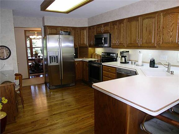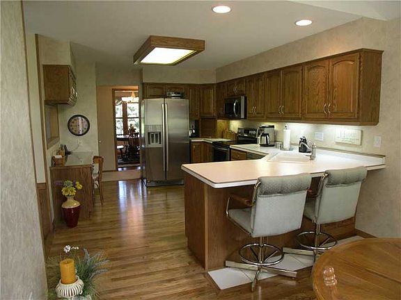 Close in acreage in outstanding location! This is a one owner home that has been meticulously cared for & updated. A spacious 2,365 square feet on the main level gives you a nice open layout with plenty of room. The many large circle top windows give this home lots of light & great views of the beautifully landscaped lot with many mature trees & plantings. Home features a large custom built kitchen with an abundance of cabinets & includes a desk area, breakfast bar, pantry & high quality appliances. Kitchen opens up to a large eat-in area with views of the yard & direct access to a sizeable deck. Kitchen & dining areas have gleaming, solid hardwood floors. From the kitchen you step down to a large family room with custom built-ins on one wall, oak wainscoting throughout the room, a fireplace & 4 large circle top windows with again ... a great view of the yard. Large master bedroom with very spacious master bath.