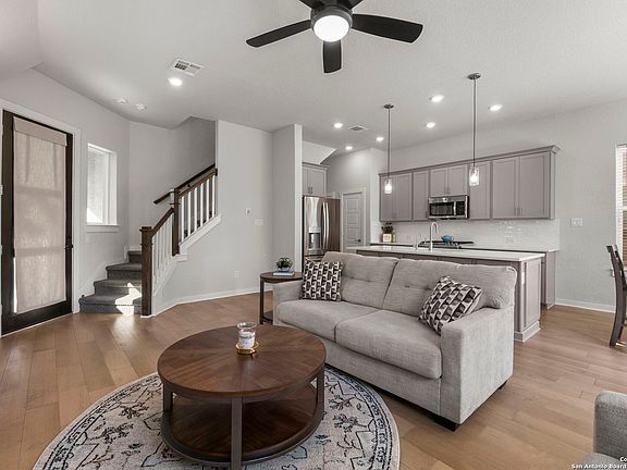Awesome Location, Priced To Sell and a $5000 concession being offered to buyer on this Beautiful David Weekly instantly livable home located in a small gated community near the medical center, minutes to USAA & UTSA. Excellent Quality build and finishes are seen from the moment you step inside. Enter inside to your Spacious Living room that overlooks the eat-in kitchen with plenty of space for bar stool seating with a separate dining area off the kitchen. Stainless Steel appliances, decorative tile backsplash & pendant lights with Plenty of windows bringing in natural lighting. Half bathroom downstairs for guests. Oversized backyard for the community with cafe lights perfect for a table and Grill. The second-floor is where you will appreciate the nice size primary suite with a private bathroom, separate vanities, framed mirror, walk-in closet, tiled oversized shower with a separate garden tub and Upgraded flooring. The secondary bedrooms down the hall share a full bathroom. Third floor flex room has so many options and can be an office, additional living or game room. Tankless water heater in the 2 car garage. HEB is so close and walking distance to your home. This location has such easy access to shopping, dining or work. Looking for a prime location, easy to maintain home that is priced to sell below value? This is the one. Set up your showing today!