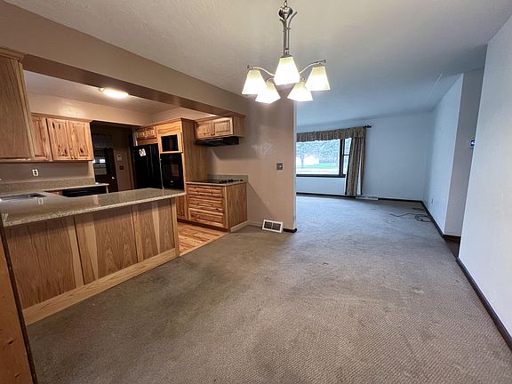 Great curb appeal on this Beautiful Ranch Style home offering over 2,000 sq.ft. of living area including the finished area in the basement.Bonus with extra 2 car garage (Heated) that makes it a 4 car garage overall.Maintence free exterior with brick and vinyl.Updated kitchen with Hickory cabinets and quartz countertops.Vaulted ceiling in Family room .All appliances included.Whole house Generac stays along with security system.Hardwood floors in all 3 bedrooms and hallway.Fenced in backyard.New Gas Forced air furnace and A/C in 2019.New Water Heater 2024.Water Softener stays.Close to Three Rivers and Hwy 131.