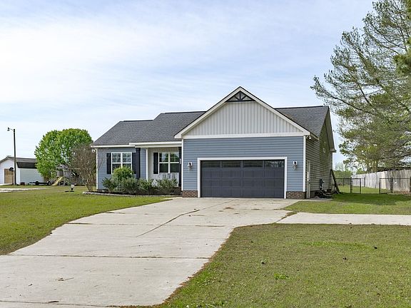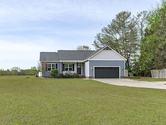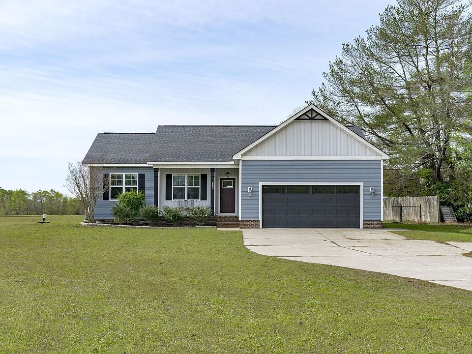 Ranch home built in 2017 lives brand new! Large .64 acre lot, plenty of space in & out. 3 B/R's plus office & large family room w/gas logs. Split bedroom plan with Primary B/R on right & Jr. B/R's on left offers lots of privacy. Kitchen w/Stainless Steel appliances, white cabinets, @ dual basin sink. Primary bath w/standup shower & beautiful tile flooring. NO CARPET IN THIS HOME!! County living but w/easy access to Raleigh & Goldsboro both 30 minutes or less away. Screened Deck & Fenced yard out back.