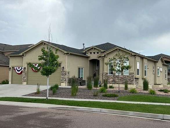 See video tour of this house on YouTube by searching 5844 CD Beautiful, builder model home with all the upgrades you desire! Your best bargain in Wolf Ranch! Come home to a beautifully maintained, energy efficient stucco home. Plenty of space for everyone with 5 large bedrooms, a dedicated home office, 4 full baths 2 large living areas, dining room and breakfast area along with a 3-car, fully finished garage. Your new home is located in the highly desired Wolf Ranch neighborhood and nationally recognized District 20 School System. Centrally located to major shopping, Peterson SFB, USAFA, Schriever SFB, Cheyenne SFS and Ft Carson. The home is adjacent to beautiful green space with a waterfall feature. Open floorplan with plenty of windows provides a natural light-filled, comfortable flow. Gorgeous, easy to maintain flooring throughout the main level. Enjoy chef's kitchen with a large granite island and counters, two ovens, and bountiful cabinets for storage. All occasion entertaining with either casual eat-in space and island seating, or celebrate in the formal dining room. An ample walk-in pantry easily accommodates your groceries and small appliances. A gas fire place and full bath are also located on the main floor. The Primary Suite is conveniently located on the main level. The Primary Bedroom easily fits a king bed and the Primary Bath includes double sinks, soaking tub, designer tiled shower and walk-in closet. Beautiful French doors open into your home office or use the space as a bedroom. A full bath is adjacent to the office/bedroom. Main floor laundry room has beautiful cabinetry. The fully finished Lower-Level living includes a second spacious living room with a kitchen & bar seating. The kitchen includes a sink, refrigerator, dishwasher and custom cabinetry. The Junior Suite accommodates a king-size bed and its own full bathroom. The two additional bedrooms share a full bathroom. Security System throughout for peace of mind. Act quickly...this bargain won't last! Renter pays utilities, and is responsible for maintaining landscape, and snow removal in compliance with all City, County and HOA standards.