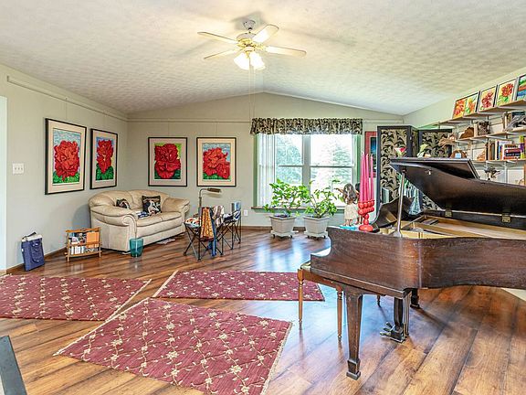 ''COUNTRY LIVING'' CLOSE TO EVERYTHING! RANCH HOME ON 5+ ACRES OF SCENIC WOODS W/ ~2,200 SF ON 2 FNSD LEVELS, GENTLY ROLLING LAND BACKING TO AN OCCASIONAL CREEK. PERFECT FOR THE CAR ENTHUSIAST, HOBBYIST, CRAFT PERSON OR FUTURE 4H PROJECTS. 36 X 60 POLE BUILDING (EASILY FITS 6 CARS) PLUS A 744 SF ART STUDIO. HOME HAS CERAMIC FOYER WHICH OPENS TO A VAULTED GREAT ROOM & 3 SEASON ROOM. VAULTED KITCHEN HAS WOOD PLANKED CEILINGS & SKYLIGHTS. OWNER'S SUITE HAS A PRIVATE BATH. FINISHED, WALK-UP BASEMENT HAS FAMILY ROOM WITH STONE FIREPLACE AND HUGE FUTURE RECREATION ROOM. THIS HOME AND PROPERTY HAS SO MUCH POTENTIAL FOR ALMOST ANYTHING.