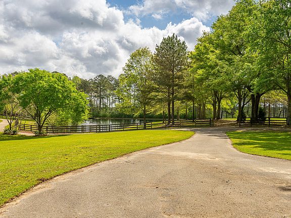 - Exterior Features: Garage with door, Paved Drive, Circular Drive, Fenced Yard, Covered Porch, Wrap Around Porch, Pond