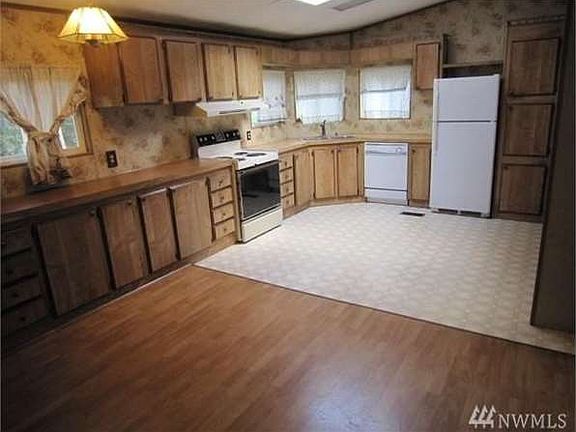 Desirable Birch Bay Village 1987 3 bed 2 bath 1,508 sq. foot manufactured home. Open living floor plan with laminate wood floors, wood stove, ceiling fan, skylight, master bedroom with master bath and 2 outdoor decks with newer composition roof. Birch Bay Village amenities include; golf course, marina, pool, tennis courts, 2 fresh water lakes, saltwater parks and beaches, 24 hour manned gated security and quiet private roads. $135,000
