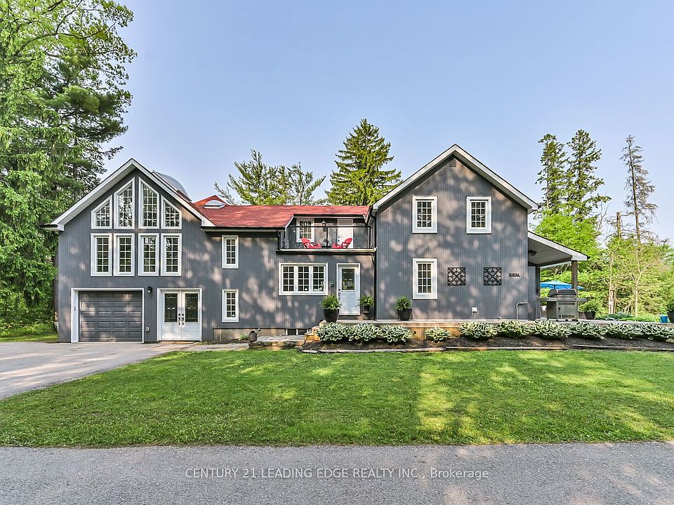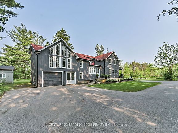 Nestled on 8.33 acres of pristine, unspoiled land, this exceptional one of a kind property offers the tranquility of Muskoka with the convenience of suburban living. Lovingly restored in 2014, the home blends timeless modern finishes with a layout ideal for growing or multi-generational families. Every detail of the exterior was updated during the restoration including the roof, soffits, eaves, windows, and exterior doors. The expansive grounds include a 10' x 10' storage shed, a separate 20' x 30' heated workshop, and a charming chicken coop for those with a passion for hobby farming. A 1000 sq ft. detached guest house which is just a short stroll from the main home features a sitting area with kitchenette, bathroom and a 2nd floor loft, a cozy and private space for visitors. Inside, the main home features a unique and versatile layout with dual staircases and distinct wings that flow seamlessly together. The main floor of this 3800 sq ft home boasts an open-concept chef-inspired kitchen overlooking the living and dining areas. Adding more convenience to this space is a powder room and laundry room with additional storage. The upper level offers a stunning great room and dining area with soaring cathedral ceilings and architecturally inspired windows that flood the space with natural light. The luxurious primary suite is a true retreat, featuring a spa-inspired ensuite and walk-out to a glass-enclosed balcony. With a total of 5 bedrooms & 5 bathrooms this property provides plenty of room for the whole family. Enjoy chilly evenings in the enclosed sunroom or take in panoramic views from the multi-level deck overlooking the rolling greenery and serene surroundings. Whether you're entertaining, gardening, or simply unwinding, this property offers the perfect backdrop.