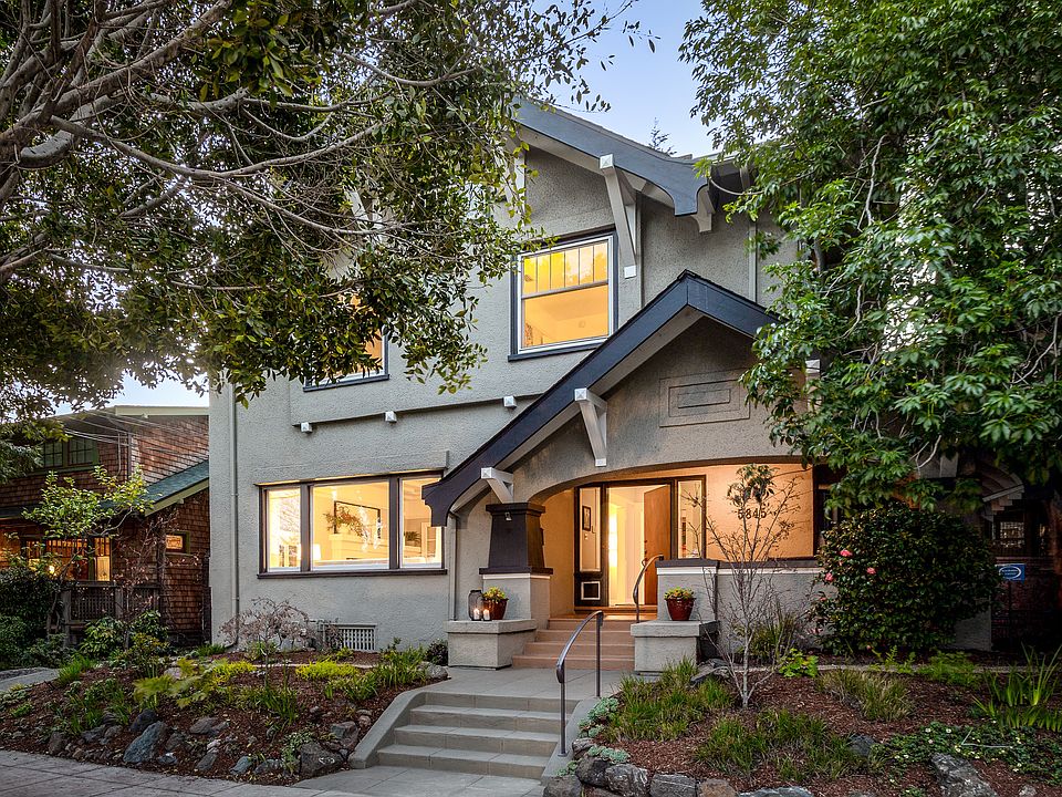 5845 Ayala is one of those timeless Rockridge classics. A sophisticated four bedroom, one and one half bath, beautifully maintained home, featuring modern amenities paired with elegance and expansive spaces. Its features include, impressively sized living room complete with lofty tiered ceilings, enormous windows, handsomely crafted fireplace, period built-ins, antique French doors into the formal dining room complete with one hundred year old built-in sideboard, newly updated kitchen with quartz counters and fresh stainless steel appliances, sweet sunporch to the large back deck and manicured garden. Upstairs we find four bedrooms, a wide, graceful stairway leading to an expansive formal landing, a central updated bath with dual vanity sinks and a large bath with shower and large closets. All located 2 blocks from BART and the shopping of College Ave.