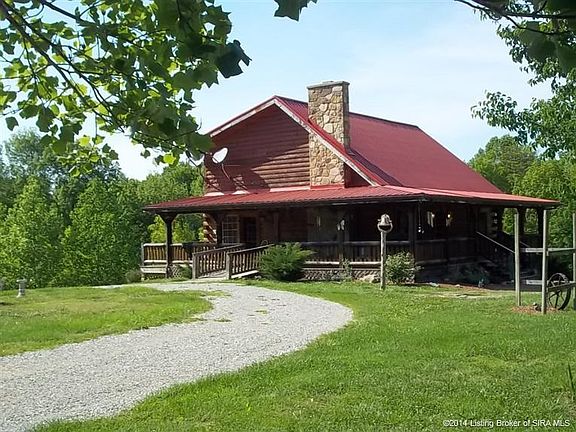 Very SECLUDED! This 1 1/2 story log home on over 16.97 acres. Hunt, fish, or boat, this property borders Spring Branch and Indian Creek, flowing into the Ohio River with over 9 acres in Classified Forest. Harrison/Crawford Forestry, is just across from this property; it's truly a HUNTERS paradise! Enjoy this spacious Country Autumn log home built in 2005. It has a large loft that overlooks the great room, with a wood burning STONE fireplace open to the kitchen and dining area. The kitchen features HICKORY cabinets and a GAS burning stove. Nice large bedrooms with walk in closets and three full baths. Two water heaters and whole house water filter system. Laundry room is on the main floor and has a 1/2 bath. Two car detached garage (24X30) with lean-to (18X30). This property has a stocked pond and above ground pool. One year home Warranty offered.