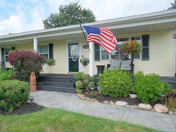 Welcoming front porch invites you into this lovely 4 bdrm 2 bath open airy ranch. The family room boasts cathedral ceilings, hwd flrs, stove, and sliding glass doors which lead to the deck overlooking a 1.8 acre lot. Kitchen with granite counters, ss appliances, breakfast bar and large eating area. First floor laundry. Formal living room could be used as a dining room. Main bdrm w/ wic. Bath has steam, sauna shower unit. Updates include furnace and a/c in 2019, hot water tank in 2020,roof is two years old, reme halo, generator, invisible fence, wifi thermostat, ring door bell, more. 2020-09-09