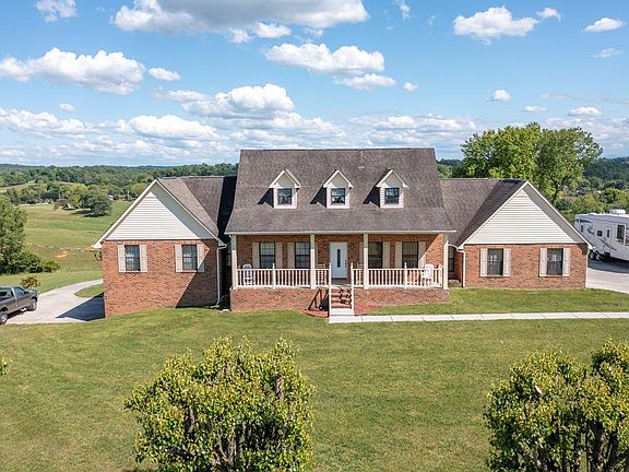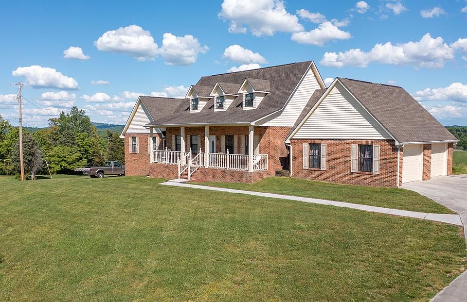 Reaching the top of this drive leads to a Spacious Home with a Magnificent View. Enjoy the country setting from this covered front porch surrounded by 8 beautiful acres. Only minutes from Panther Creek State Park, Industry and Merchant's Greene, where you will find great opportunities for business, shopping and dining. This 3 Br. 2.5 bath home with the Master and Laundry on the Main, including a 2 car garage also on the main with an additional 2 car garage in the basement, a New Roof and move in ready. There are 2 large metal storage buildings and a New Heat Pump on the main level.