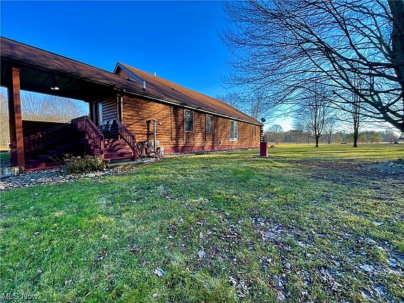 Priced below appraised value, motivated sellers. See the detailed beauty in this One owner Log Cabin home built in 1987 by seller's grandpa. Beautiful property nestled on 5.12 acres with a 64 x 32 outbuilding with metal siding, sliding barn doors, electric and concrete floors. This 2,500 sq ft Home features vaulted ceilings, open floor plan, upstairs cat walk from bedroom to loft overlooking the grand first floor. Large eat in kitchen with newer appliances updated, sink faucet and backsplash. This 4 BR home has 2 full partially updated baths and first floor utility room. One BR was used as a Family Room with a wood burning stove. 2 car garage with a roofed breezeway to home plus a walk out basement with new sump pump. This is a must see!