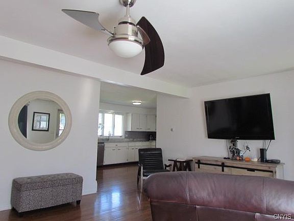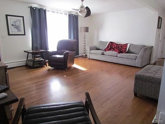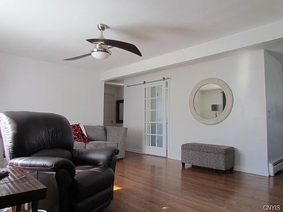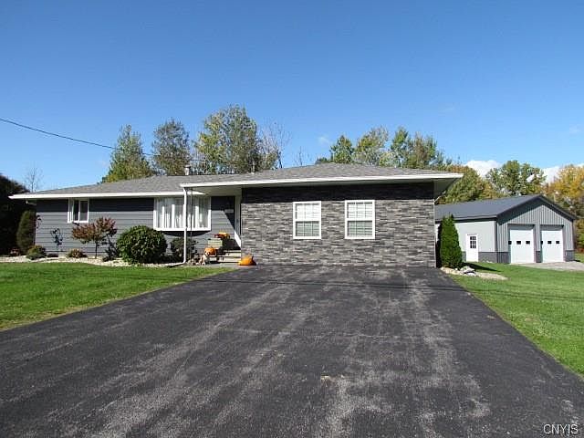 Wonderful Ranch in North Syracuse school district. This rare find sits on almost 2-1/2 acres. As you walk in the welcoming front door you are in the spacious living room that is flooded with natural light. Great open floor plan with gleaming hardwoods throughtout. Big and bright updated kitchen with granite and breakfast bar. Formal dining room with slider to private backyard. Three good sized bedrooms and an updated full bath. The attached garage has been converted into extra living space with feature knotty pine wall. The basement is huge with laundry area and can be easily finished for more space. There is a new furnace and central air has been added. The electrical panel has been updated. The roof is 6 years old and all new landscaping has been done. There is a new 30x40 pole barn a perfect place to store all your toys or turn it into a man cave! This home is conveniently located near shopping, restaurants and all major highways. Don't miss out! Showings start Saturday, October 17th at 10am!