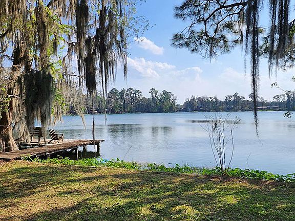 WATER FRONT PROPERTY WITH BEAUTIFUL SUNROOM!!! This 5 bedroom, 4 bath home sits on the largest lot on Dykes Pond. The almost 1 acre lot features a spacious yard, with a dock and private boat ramp. The large sunroom gives a beautiful view of peaceful Dykes Pond to sit & enjoy the scenic water views and the lovely sunsets. The home has an excellent kitchen with recently updated appliances. The breakfast nook and large dining area allow lots of room for family gatherings. The huge built-in china cabinets offer plenty of space for display as well as storage. The living room is very spacious and includes a wood burning stove. The master bedroom & guest bedroom are both lake front with large windows for wonderful views of the lake. The laundry room has good cabinet space, a double sink & room for a washer/dryer and a freezer. Shown by appointment only. Family member is a real estate broker.