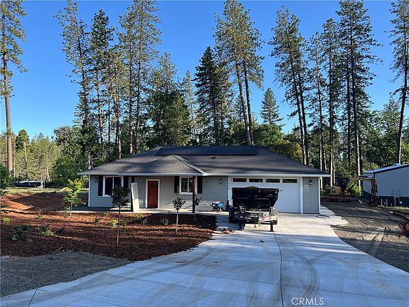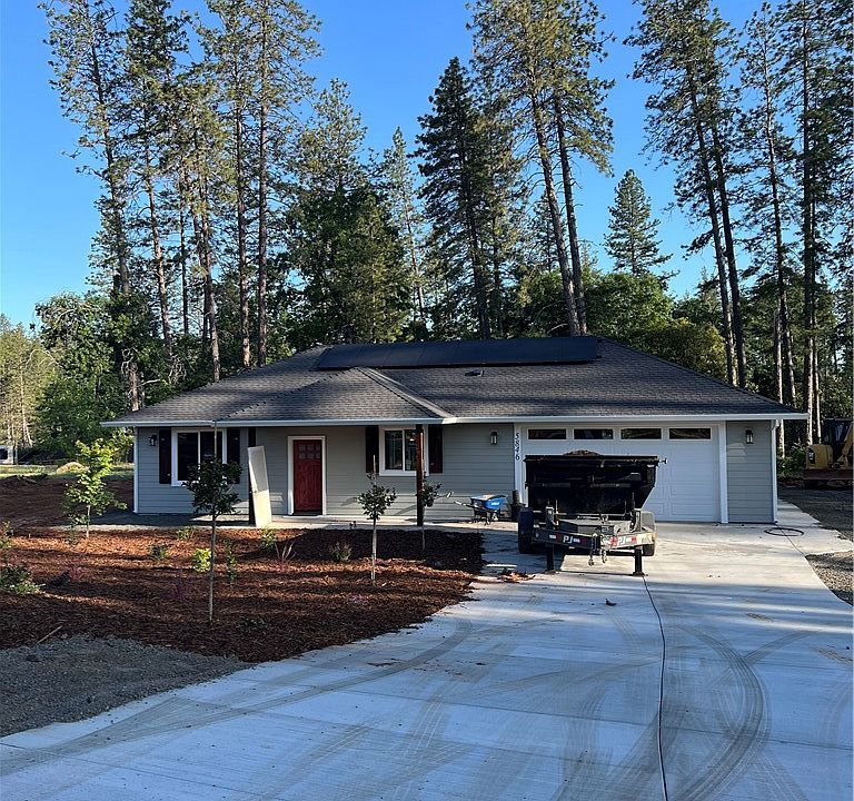 This stunning 2 bedroom, 2 bathroom home built by local Builder Frost Construction is now available for sale! Owned Solar 3.04 KW system and large .46 acre lot size. Boasting a generous 1,021 square feet of living space, this home features top-notch craftsmanship and modern amenities. Upon entering, you'll be greeted by a charming 96 square foot covered front porch with a craftsman-style front door and custom shutters. Step inside to discover an open floor plan that seamlessly connects the living room, kitchen, and dining area. The kitchen is a chef's dream with granite countertops, stainless steel appliances, recessed LED and pendant lighting, and a stylish island for added convenience. The primary bedroom is a serene retreat with crown molding, a slider leading to the covered patio, and a well-appointed en-suite bathroom featuring granite counters and a step-in shower. The guest bedroom also offers crown molding and access to a sleek guest bathroom with granite countertops and a tub/shower combination. This home is equipped with a 8-panel owned solar system for energy efficiency and features gorgeous Vinyl Plank flooring throughout. Outside, you'll find a spacious 114 square foot covered patio with recessed lighting and a ceiling fan, perfect for outdoor entertaining. RV, Boat or Trailer Parking over 40ft in length and 20 ft. wide. Fantastic Opportunity. Additionally, the oversized two-car garage, measuring 23'5" wide by 25'10" deep, includes a laundry area and plenty of space for a boat, trailer, or RV parking. Don't miss out on the opportunity to call this beautiful home yours!
