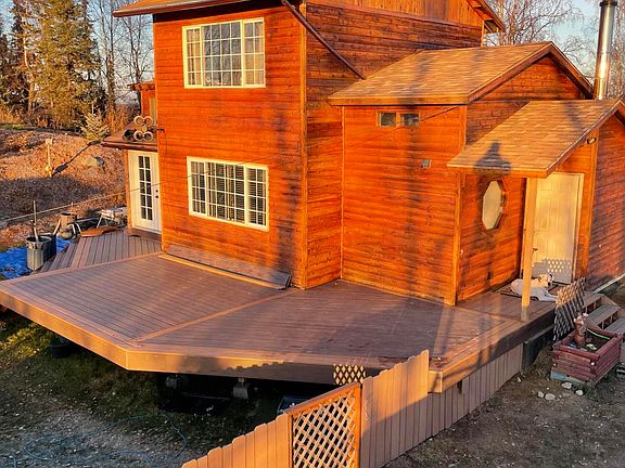 Cozy comfortable well laid out beautiful home on 1.68 acres in the heart of big lake recreational community. Just minutes away from Crooked, Lake public boat launch. 10 minute drive from Three Bears grocery gas and ace hardware . This property has so much to offer. Your possibilities are truly endless. A perfect starter home for a young family with kids. Large landscaped lawn with greenhouse,beautiful deck to enjoy the beauty. The house has just had its roof reshingled with ice shield underlayment, siding striped and beautifully stained cedar. 500 square-foot detached workshop for your hobbies, or to store your ATVs. 1.68 acres feels so much larger with 5 acres of heavily wooded undeveloped property behind you to the north and another 5 acres of undeveloped property to your west. This property has your privacy and seclusion on a super quiet street. House and shop are built at the top of a sloping hillside, with view of sleeping Lady Mt Susitna . The driveway has a gradual sloping incline that then splits into a circle driveway. At this point there are two other driveways that lead to separate cleared and leveled house pads. 200 amp double meter base was recently installed by MEA making this property have the possibility of a detached four Plex property. Owner can build a large shop or rental recreation cabins. The possibilities are truly endless.