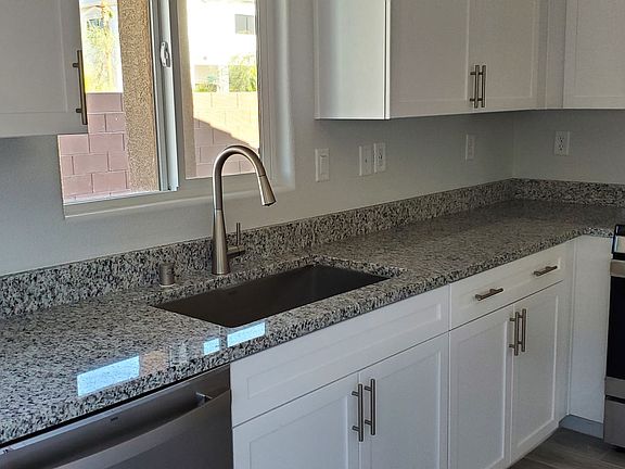 Beautiful modern paintSpacious master bedroomCovered patioDesert landscape backyardStainless steel appliancesSpacious breakfast table spaceStanding shower
