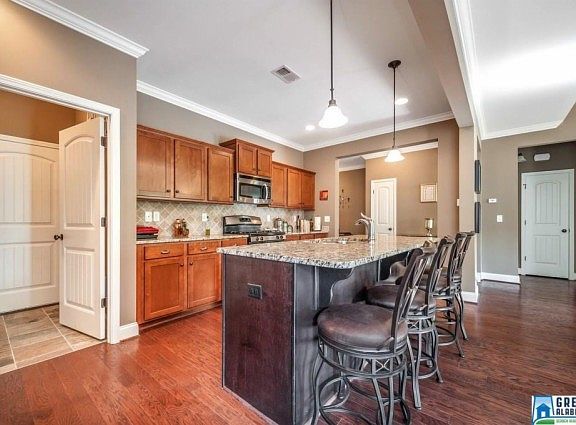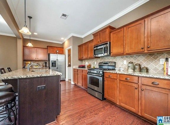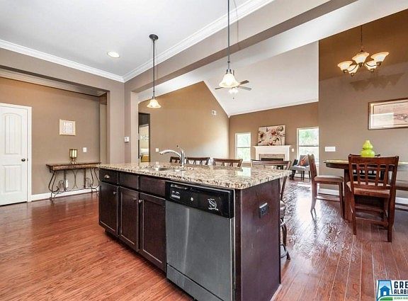Lake Lot! This Alstead plan has 4 bedrooms and 3.5/baths, a study on the main level, and an extra large loft upstairs! Features include hardwood floors, tile, carpet, granite counters in kitchen with elegant stainless appliances and a gorgeous back-splash. Main level master suite. Three guest bedrooms upstairs with two full baths. Laundry downstairs. Elegant cabinets. The master bath is amazingly large! Tiled master shower with separate garden tub and dual vanity. Large walk-in closet in master. Open living room/dining room combination. Vent-less gas fireplace. Elegant crown molding. Gas heat. Stainless steel under-mount kitchen sink. Custom wood mantel fireplace with tile surround. Cultured marble counters in the bath. What a great deal