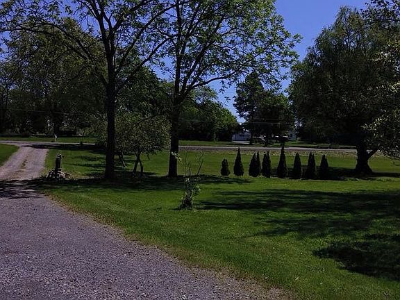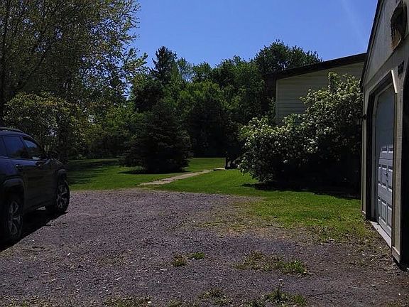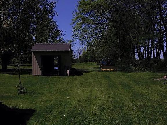 Enjoy this nice flat 2 acer parcel with 236 foot of road frontage lots of apple and pear trees. House sets back from the road in middle of lot driveway w/turn around Nice 3 bedroom 2 bath home with master bedroom and bath on one side and other 2 bedrooms and full bath on other side. Both living room and family room have fireplaces. Detached large fully insolated 24x28 2 car garage with heat, cable, electric, and cement floor. Large storage shed, This property has it all, public water, natural gas, only a few minutes from town. A property that is move in condition! Imitate possession avaible