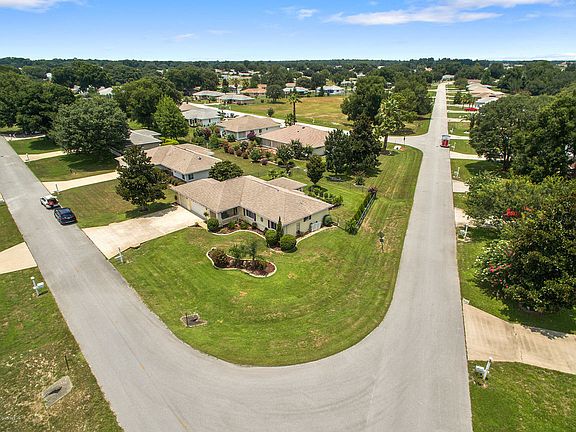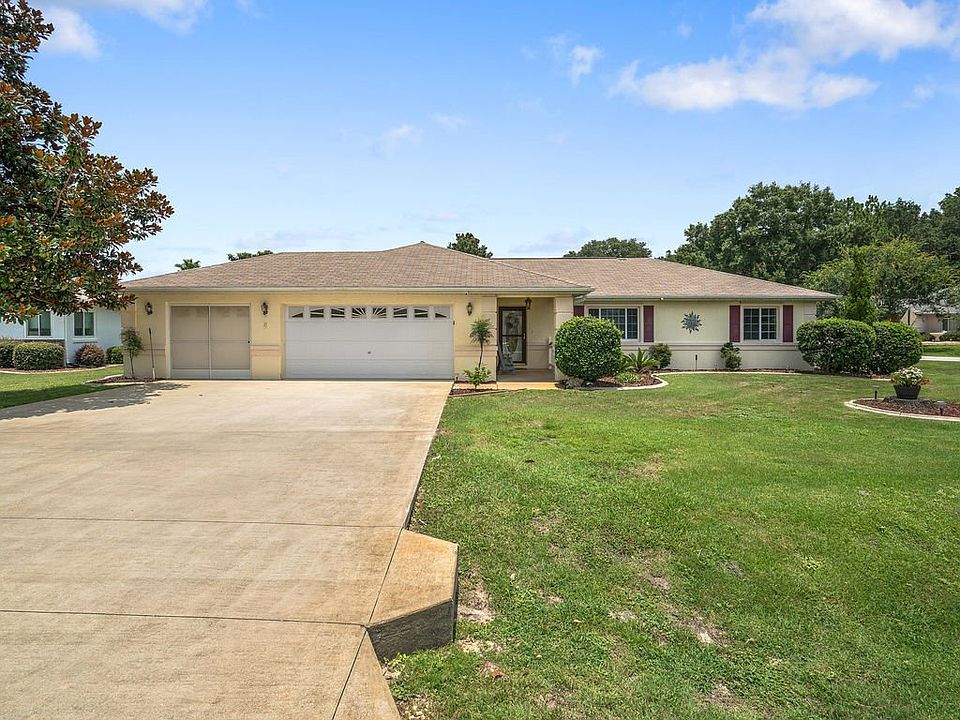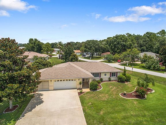 Beautifully landscaped corner lot 3/2 2.5 car garage home in Cherry Wood 55+ Community. Split open floor plan has large master bedroom/bathroom with a built in vanity, huge eat-in kitchen with lots of cabinet space, separate dining area and nice size living/family room. Walk through the french doors to the enclosed Florida/sun room that is under heat/air. Entertain friends and family on the outside porch under the gazebo which has a brand new canopy. Backyard features a variety of fruit trees including orange, lemon, orange/grapefruit and kumquat. Irrigation well for landscaping. Garage has separate golf cart garage/workshop perfect for all your hobbies. HOA also includes trash pickup. New hot water heater and garage door opener.