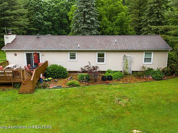 Welcome to your peaceful escape conveniently located just off US127 via Price Rd onto St. Clair Rd. This well maintained 3 bedroom, 2 bath home is nestled on a beautiful spacious almost 4 acre parcel with a tree lined perimeter that provides both privacy and a serene setting. Inside you will find a spacious living room just off the front entry perfect for everyday comfort or welcoming guests. Toward the back of the home the cozy family room features a wood burning fireplace framed by custom built in bookcase creating a warm inviting atmosphere. Just off of the siding glass doors takes you to a large newer deck ideal for gatherings or simply enjoying the outdoors. Additionally features include a full basement an attached garage and recent updates such as a newer roof, water heater, and fresh interior paint. This home is also wired for a generator, offering added peace of mind. If you're looking for a move-in-ready home with acreage and convenient access to major travel routes, this property checks all the boxes!
