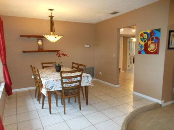 Magnificent 3 bedroom 2 bath home. Formal living and dining rooms. Huge family room. Eat-in kitchen. Stacked bedrooms. Large covered and screened patio with pass thru from kitchen. 2 car garage, circular drive, corner lot. Hurricane shutters. sprinkler system with well water. Children's playground equipment stays. Exclude valances in kids' rooms. Great schools, family neighborhood, shopping and houses of worship nearby. Immaculate turn-key condition. NO SHOWINGS Sunday thru Thursday after 6:30 PM.