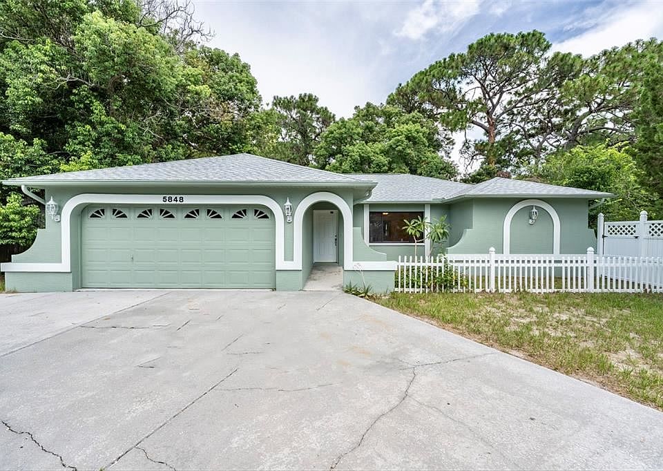 Bring Your Golf Cart! NO FLOOD ZONE! Spacious three bedroom and two bath Florida home with a New Roof (2022), New Paint inside and out(2022) and newer hot water heater(2021). Large corner lot with plenty of room for a pool and you can still park an RV or a boat on the side! Circular driveway is perfect for hosting parties and having room to park. This home allows you to create it the way you want. The garage has a partial conversion that is easy to convert back if desired, while still giving you a garage to put your tools, bikes and more. Located in an awesome neighborhood with trees hanging over the streets and real hometown feel, all while being close to plenty of activities. Main Street is only a few minutes away! Plenty of restaurants, coffee shops, breweries, a new hotel and a library to relax in. Sims Park features a lake with a kayak launch, splash pad and playground. New Port Richey River Walk and boat launch. Take boat ride on the Cotee River and dock for a meal at one of the restaurants on the water before going out to the Gulf to watch the beautiful Florida Sunsets! Right down the street you can visit the $14M state-of-the-art New Port Richey Recreation and Aquatic Center. Fitness Center, Basketball, Swimming, Skate Parks and More.