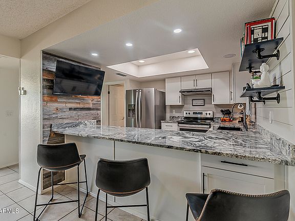 Beautifully remodeled home checks all the boxes! 1,500+ sqft. of bright, open living space, this 3-bed, 2-bath home combines modern style with everyday convenience. Step inside to find abundant natural light streaming through brand-new energy and sound-efficient windows. The spacious living area features a cozy fireplace, while the remodeled kitchen with modern appliances and plenty of counter space makes cooking a joy. Both bathrooms have been tastefully updated. Split floor plan ensures privacy and comfort. Outside, enjoy your own covered patio surrounded by lush landscaping—perfect for relaxing without the hassle of major yard work. 2 car garage & extra parking spot. Fresh interior paint. Unbeatable proximity to the 101 & I-17 freeways, shopping, dining, hospitals, and schools. As part of the community, you'll have access to a pool, basketball & tennis courts. Low-maintenance & Move-in ready comfort. Whether you're buying your very first home or seeking an easy-care "lock and leave," this condo is the perfect fit.