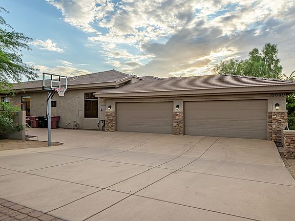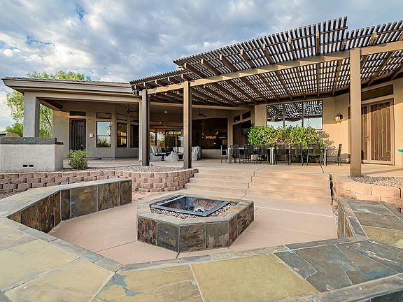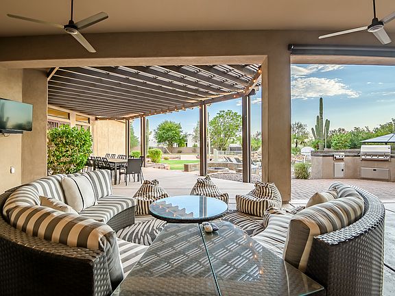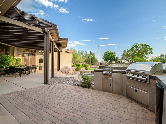 This 7-bedroom, 4-bathroom estate in the heart of North Scottsdale offers true resort-style living, comfortably sleeping up to 24 guests. Spanning nearly 6,000 sq. ft., this luxurious retreat boasts high-end finishes, an open floor plan, and soaring 12' ceilings. Enjoy breathtaking views of the desert landscape while relaxing in ultimate comfort. Step outside to an entertainer's dream backyard featuring a private pool with a waterslide, a hot tub, and shaded poolside seating. The grounds include immersive outdoor audio, a jungle gym, trampoline, and plenty of space to relax or play. Inside, find multiple living spaces, including a cozy sitting area, formal dining room, and a spacious kitchen with granite countertops, stainless steel appliances, and ample seating. Entertainment options abound with a private movie theater, game room with a pool table and arcade games, and a Sonos-controlled sound system. Whether indoors or out, this estate is designed for relaxation and fun. Property Highlights: Private pool (4'-9' deep) with waterslide, jumping rock, basketball hoop, and oversized spa Game room with pool table, arcade games, and a 55" Smart TV Private movie theater with 12' screen, iPad-controlled 4K projector, and 5.1 surround sound Outdoor entertainment area with BBQ, dining for 14, fire pit, and 55" Smart TV Fully lit resort-style backyard with Sonos-controlled sound system Playground with jungle gym and 15' trampoline Kitchen and informal living area with a 75" Smart TV Two workspaces with monitors for remote work convenience Bedroom Layout: Master Bedroom: King bed, en-suite bathroom Bedroom 2: King bed, shared bathroom Bedroom 3: 2 Queen beds, shared bathroom Bedroom 4: 2 Queen beds, shared bathroom Bedroom 5: 1 Queen bed, shared bathroom Bedroom 6: Two Queen beds, shared bathroom Bedroom 7: 2 Bunk beds, shared bathroom Additional x` Details: $200/day for pool heating (please note the minimum requirement is for the full stay). Heaters set to 80 degrees) No pets allowed due to severe allergies No touching pool equipment ($500 fine) Pack & Play available ID verification & signed rental agreement required Scottsdale noise ordinance: Quiet hours from 8 PM - 10 AM Maximum of 4 cars allowed for parking Location: Major crossroads: E Pinnacle Vista Dr & N 56th St Close to Kierland Commons, Desert Ridge, Cave Creek, world-class golf courses, and Barrett-Jackson Scottsdale License #2037475 TPT #21417690