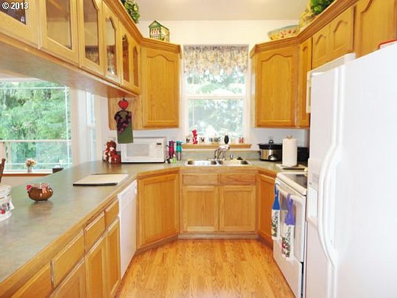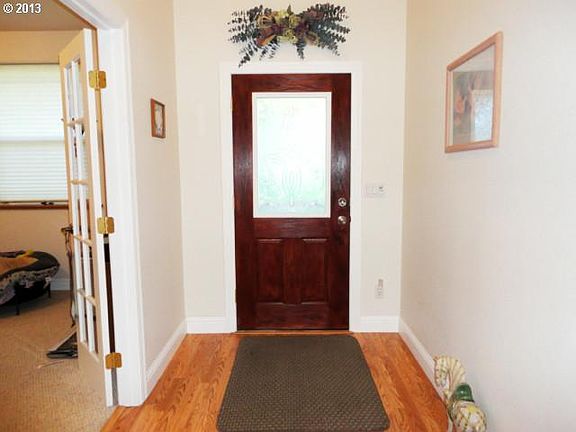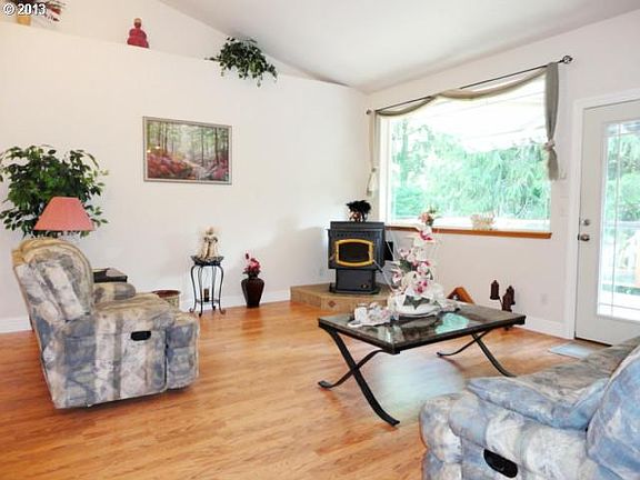 Florence, OR 3 bedroom, 3 bath, office/den with french doors, open floor plan with 9 ft. and vaulted ceilings, laminate floors, oversize double garage with garage door openers, back deck with retractable awning, views of trees on three sides of grass backyard.