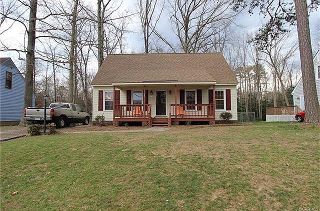 Darling cape cod in desirable Chesterfield County neighborhood. The owners of this lovely home have painstakingly remodeled this home from top to bottom. This home features 4 generous sized bedrooms, a first floor master suite, large eat in kitchen, oversized deck, full country front porch, fenced back yard, and boasts; a new dimensional roof, vinyl windows, newer HVAC system, 2 detached sheds, 1 attached utility room, updated bath rooms, fresh paint and brand new carpet. This home is turn key and ready for it's new happy homeowner!
