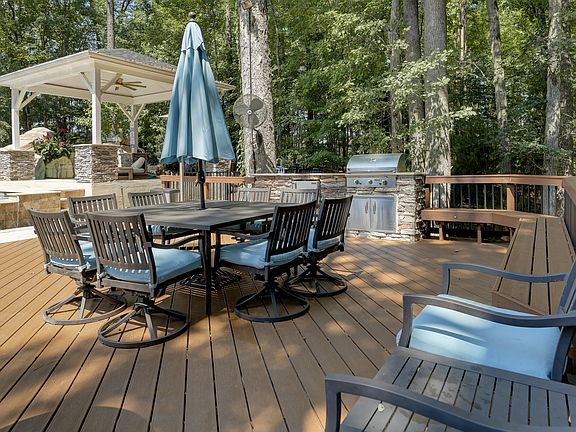 WOW! OUTSTANDING Baxter Home with Outdoor OASIS and Garage Apartment! Resort styled in-ground pool with shaded cabana, hot tub, water bar seats, rock waterfall, and infinity edge waterfall! Incredible nighttime lighting effects! There's a built in grill and cooking area, fire pit all surrounded by stunning patio! Another large deck with gas and fridge with an ambient fireplace is set directly off the main Kitchen/Great Room. PLUS main level wrap porch with flush mounted heaters and upper balcony. This home is EXQUISITE; 2 story Great Room with wall of windows and Juliet balcony, a beautiful Chef's Kitchen. Luxurious Master Suite with incredible bath and a private laundry. Huge secondary bedrooms and spacious baths. The apartment over the Garage has it all and offers privacy to homeowners and guests. This home has a fenced in yard, all new stone front & side walkways and is set on a quiet cul-de-sac that backs to woods in the amenity rich Baxter. Must, ABSOLUTE MUST see this one!