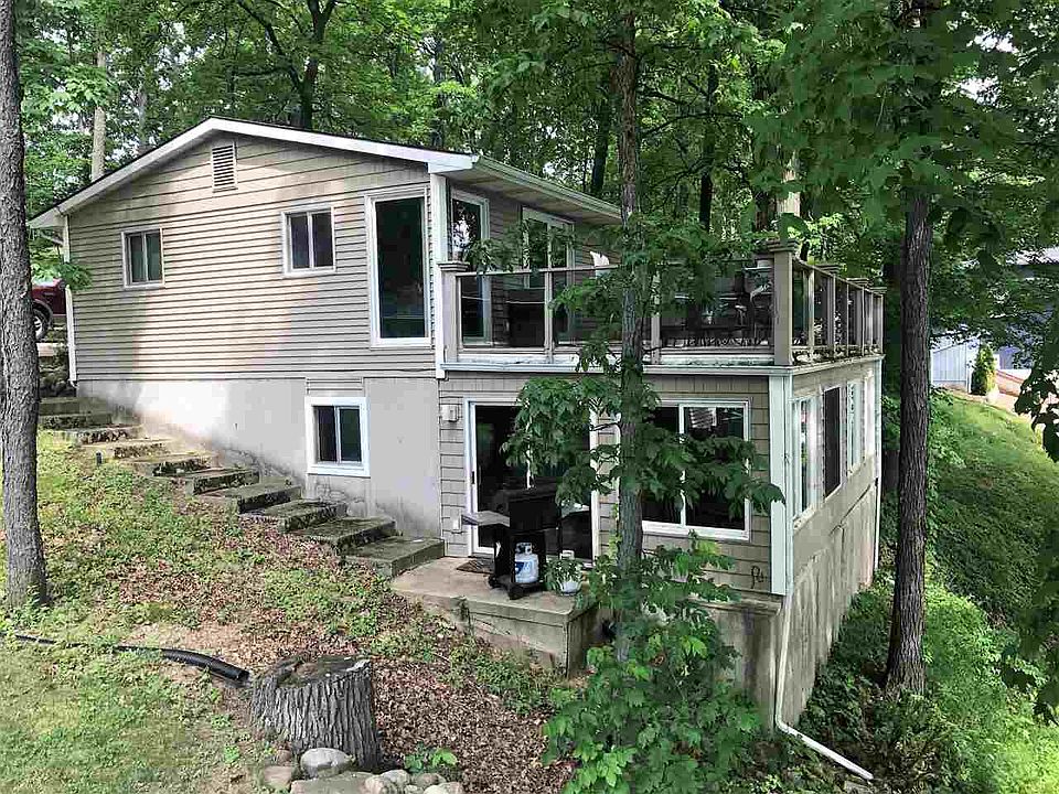 Excellent location on Lake James! This year around lake front home features 4 bedrooms 2 and 1/2 baths with 54 feet of lakefront. The WOW factor is the the Panoramic window views of the lake. The lower level was completely updated in 2008! The kitchen features custom Maple Cabinets with pull allowing plenty of storage, kitchen appliances are included. The unique flooring on this level is all ceramic for easy clean-up which will be needed with all the entertaining. The Great Room features a Wet-Bar and 3 sided gas fireplace - which will heat the open space quickly. The master bedroom suite has plenty of natural light with a patio sliding door and wall corner windows which face the scenic water views. The closet is incredibly spacious and the bath has a walk-in ceramic tiled shower. There are 3 more bedrooms and full bath on the main level. The open deck is easy maintenance and over looks the water. The deck and great room are wired for surround sound. The lot is plenty big enough if you would want to build a garage! This home is a must-see on the ever popular Lake James!