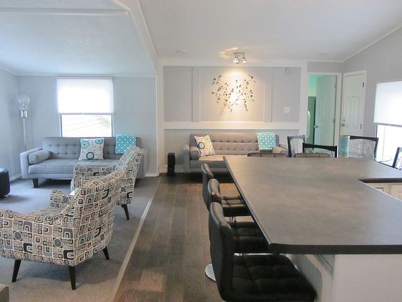 - Breakfast Bar, Cathedral Ceiling(s), Laminate Counters, Kitchen Island, Open Floorplan, Split Br Floor Plan, Main Level Bedroom Suite