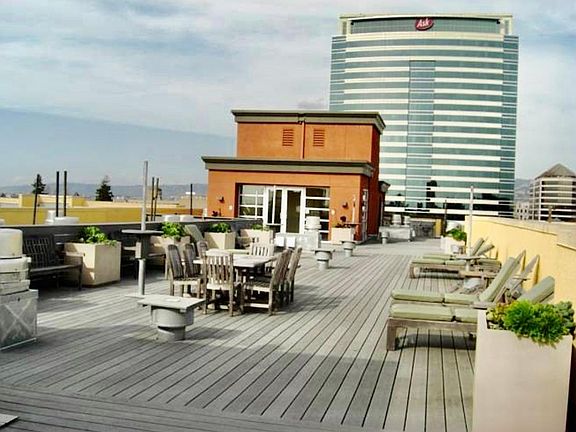 Access to building amenities: such as fitness center, sauna, steam room, business center, roof top terrace with gas BBQ, and quite garden courtyard. Secure mail room and security card building entry. Great restaurant as close as one block away! Walking distance to Oak Chinatown, Jack London Square, Housewives Market, Fridays Farmers Market. Easy access to 980/880/580/80, Berkeley, Emeryville, Bay Bridge, and all modes of public transportation. No pets. No smoking allowed. One designated parking space in onsite garage. 1st month rent and deposit due at signing. Owner responsible for HOA, Water, and Garbage. Tenant pays all other utilities.