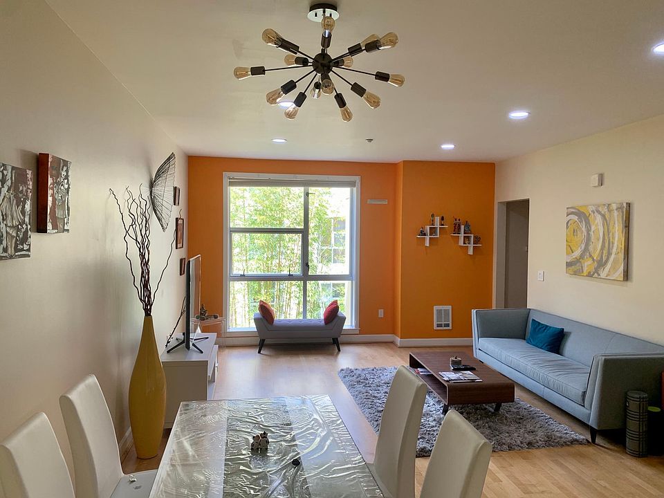 Large Sunny Two-Bedroom Two-Bathroom plus Den unit in well-appointed luxury condominium community with access to amenities such as in-unit washer dryer, secured garage parking, fitness center, sauna/steam, rooftop deck with BBQ area with amazing views, and secured bicycle storage locker. Unit has high ceilings, recessed lights and upgrades in kitchen. Only one shared wall with neighbor. Quiet corner unit overlooks the courtyard. Multiple options for working from home. Leverage in-unit den as office room, or use the business center and conference room (free wireless internet in common areas) in the building. Not sure about potentially commuting to work in the future? This location is a commuter's dream. 4Walk 4 blocks to BART (12th Street/City Center station). Less than 1/2 mile to freeway entrance: 980/880/580/80, Berkeley, Emeryville, Bay Bridge, San Francisco and San Jose. Conveniently located in Old Oakland downtown with access to shops, restaurants and bars within walking distance. Old Oakland hosts a weekly bountiful Farmer's Market filled with fresh produce, flowers and prepared foods. Located within a few blocks from Oakland Chinatown, Oakland Convention Center, Jack London Square and Lake Merritt. Minimum 1 year lease with renewal option Credit Check will be conducted. Security deposit required. 1 or 2 Parking spots available. Parking also has EV charging. Pet Friendly. Max. 1 Dog or 2 Cats allowed. No Smoking allowed.