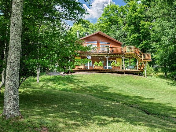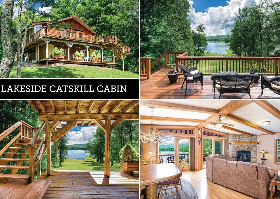 *** Lakeside Catskill Cabin: 3 Bedrooms, 2 baths, 5.95 acres, Full Basement *** MOVE-IN-READY REDWOOD/CEDAR log-sided home with IMPRESSIVE LAKE VIEWS. The view from the GREAT ROOM and DECK is simply AWESOME. There is a gas-log fireplace to keep you warm in the cooler months and dual sliders onto the wrap-around (and partially covered) deck! The kitchen is well-appointed with dishwasher, oven/range, and refrigerator all around a center isle great for entertaining while cooking. The master bedroom has its own large bathroom, featuring multiple built-in cabinets, closet and walk-in shower with bench. The 2 guest bedrooms share a 2nd full bathroom (with an additional door accessing the laundry room). A semi-finished media / play area is located downstairs, with additional sliders out onto the expansive lower deck. AND there is a fantastic pellet stove that really blasts out the heat filling the entire home with comfortable warmth from below.A well-tended lawn slopes gently down to the water's edge for easy boat launching, swimming access and all sorts of water fun. The garage shed is large enough to store a tractor, ATV, or boats, lawn equipment and deck chairs. Generator and AC come included with this home.Minutes from the Book Village' of Hobart NY and close to Delhi, Stamford, Bovina, and Oneonta. Great outdoor options for boating, fishing, skiing, hiking, and restaurants.