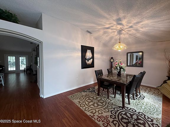 Outside, French doors lead to a charming rear porch and a beautifully landscaped backyard, perfect for enjoying Florida evenings. Also includes an attached 2 car garage.