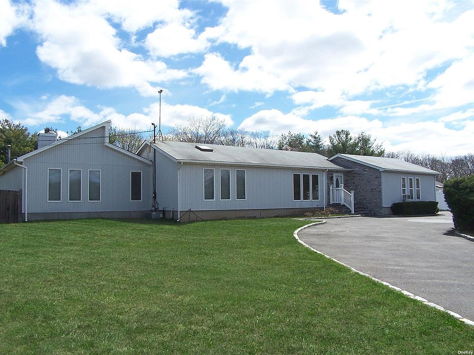 Welcome to serenity in the beautiful town of Holtsville where this expanded ranch boasts 3 large bedrooms , 2 full baths , 2 half baths , a huge master bedroom with a fireplace , vaulted ceilings and a huge master bath , and a walkout to your own private deck , eat in kitchen , den , dining area , laundry room or 4th bedroom , full partially finished basement with a half bath , a separate office area with a half bath , wrap around driveway , and a huge backyard which is ideal for entertaining large crowds or a more intimate setting just for you plus much much more !!