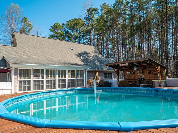 Meticulous home with the best outdoor space ever! Pool, deck, bar, firepit, patio, cabana and seclusion! Two car detached garage with automotive lift to surely satisfy car enthusiasts. Great location Minutes to Durham, Raleigh & Hillsborough, yet this private oasis is tucked away just inside Person county in well desired Timberlake, NC! This design brings a new definition to outdoor living space! There's a ton of it all perfectly laid out to get the most enjoyment ever! The inside is so well taken care of it feels brand new. Solid surface countertops, beautiful flooring and the main bedroom can be on first floor or the second floor! Enjoy days on the front porch or in the sunroom sitting and sipping! 585 CC Andrews Rd, Timberlake, NC 27583