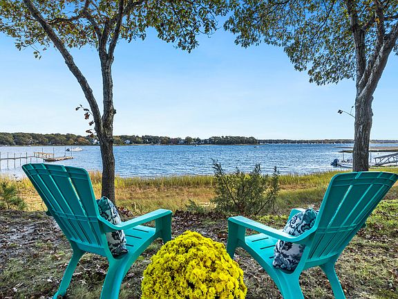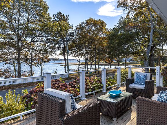 Welcome to 580 & 585 Circuit Ave, where breathtaking waterfront views await you. This property includes direct access to a waterfront parcel that features a private beach perfect for relaxing, kayaking, swimming, and shell fishing. The home has been wonderfully remodeled from top to bottom, showcasing an open floor plan and expansive picture windows that capture the stunning scenery. On cooler evenings, the wood burning fireplace provides a cozy ambiance for gathering with family and friends. The kitchen features maple cabinetry and stainless-steel appliances, while the updated bathroom includes convenient laundry facilities and the 4-season sunroom is complete with vaulted, beamed ceilings and large corner window provides even more incredible views. Step outside to enjoy the expansive deck and outdoor shower, adding to the charm of this coastal retreat. The property offers ample storage space with a spacious shed and a full basement.Patuisset Island is the perfect place for creating cherished summer memories. Just a short trip over the Bourne bridge, this incredible community offers everything you could want.