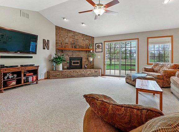Would you like to enjoy a cup of coffee on your back patio listening to the birds chirp in the morning sun? Or, have your friends over and make smores over the fire pit on a crisp fall evening watching the mature trees turn their leaves. Step inside to the beautifully maintained home with vaulted ceilings, hardwood floors & freshly painted interior. The eat in kitchen offers plenty of cabinet and work space, stainless steel appliances, center island & 2 large pantries. The living room features great entertaining space and overlooks the picturesque backyard. The master suite includes a large private bath with walk in shower. The basement has been completely remodeled offering a open living space, 9' ceilings, full bathroom, storage room and home gym. Home has been pre-inspected. You will enjoy 2.5 acres of serene countryside.
