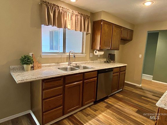 This charming home has been newly renovated and close to town, walking distance to the library. It has new LVP flooring in kitchen and bathroom, New kitchen counters, dishwasher and faucet, new water heater and new exterior paint. It has been well cared for and is a great home with no HOAs, RV parking on the side, wood burning stove. Has central air to keep it cool in the hot summer, and a furnace to keep warm if you don't want to use the fireplace. This home is clean and move in ready!