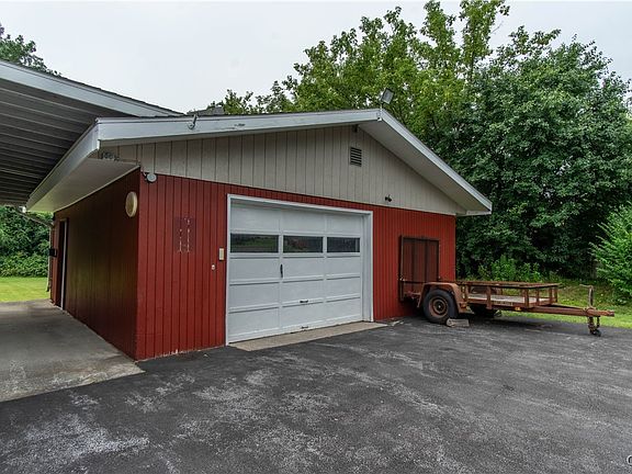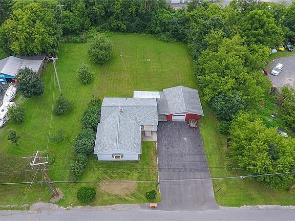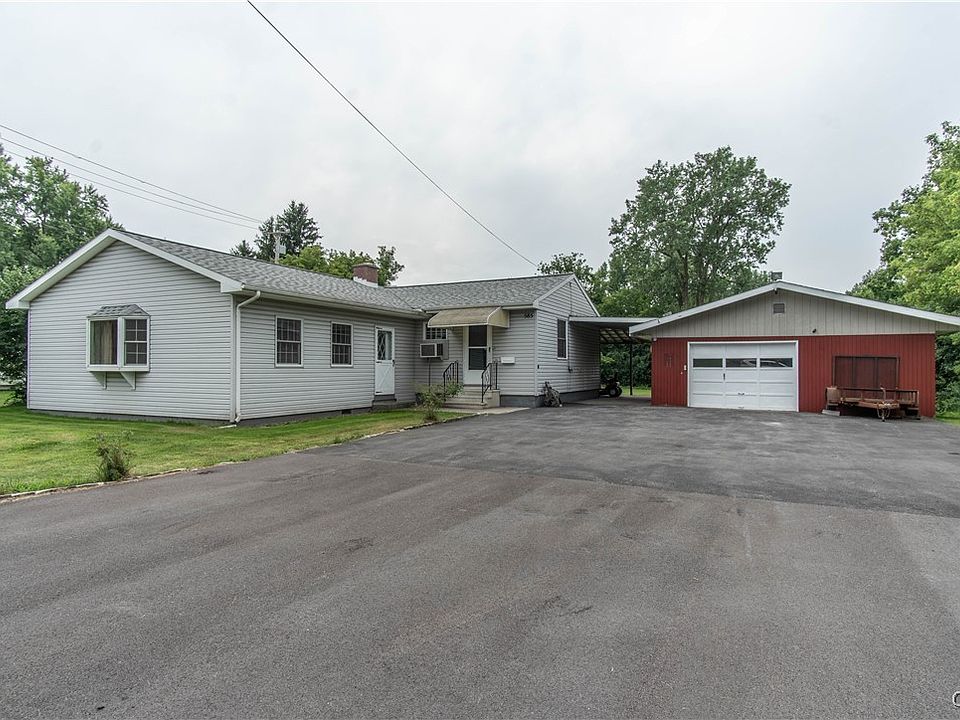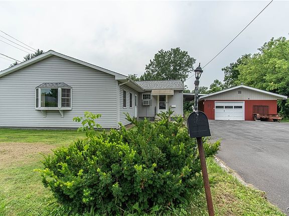 Look no further! Spacious ranch located less than 20 minutes from Fort Drum. Off the primary living room you can enter either the kitchen to the right that has plenty of counter space and wood cabinets, plus a stainless steel fridge, or enter down the hallway on the left to the 3 bedrooms & 1 bath, plus on the opposite side of the living room is an oversized den with doors that could be shut for a 4th bedroom, office, studio, playroom, gym etc. With the doors shut this den could be a huge primary suite. Also, a great feature is the detached one stall garage with lots of storage space for a motorcycle, landscaping equipment and tools. Good sized lot as well, for all your BBQ and entertainment fun. This home also has public water and public sewer. Close to famous dining like Arts Jug and Jeans Beans, near a shopping plaza, and short distance to the elementary school. Thompson park also is very close by. This home is a must see! Don't delay, call today to schedule your private showing. FAST CLOSING POSSIBLE!!