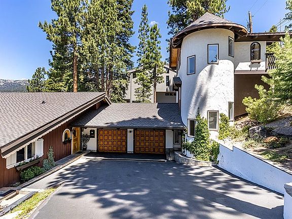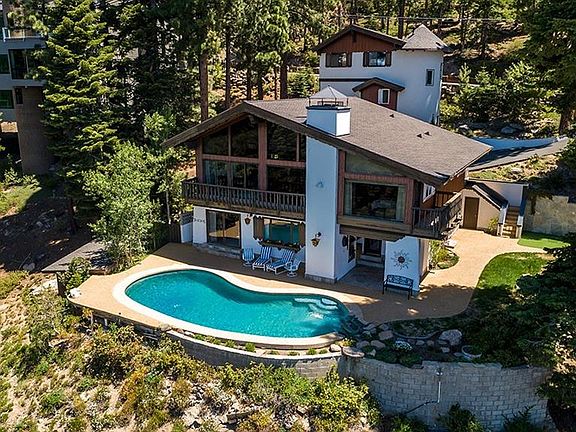 Stunning Lakeviews greet you as you enter this unique and inviting Austrian style home with Forest Service land below. Located on one of the most desirable streets and sought after Fairview Blvd neighborhoods on the Eastern Slope. Beamed cathedral ceilings, large picture windows, beautiful woodworking and attention to detail are evident in this well built home. You will delight in the views from the entry level Master Bedroom and Study. The lower level features a spacious kitchen that looks out to a beautiful yard and leads to an amazing, inground heated swimming pool. Lounge around the pool in the summer as you take in the panoramic views of Lake Tahoe and enjoy a family BBQ in the covered patio. With the pool comes an outside half bath and outdoor shower and outdoor speakers. The property features plenty of parking (2 two car garages & a 2 car parking pad at street level). The upper garage is heated with a heated driveway and offers elevator access from the street to the main level.