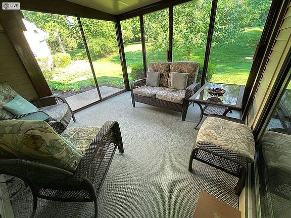For sale is a 1,212 square foot single story two-bedroom two-bathroom residence in the Franklin Village of the energetic 55+ Hershey’s Mill gated community. This home offers exterior maintenance free living, beautiful hardwood floors throughout the main living spaces, and wall to wall carpet in the two bedrooms. The living room features a wood burning fireplace, wood blinds, and a sliding door that opens onto a cozy sun porch with a tranquil vista view. The eat-in kitchen is completed by a dining area that basks in the morning sunshine provided by a 6-foot by 3.5-foot operable mulled casement window. The master bedroom has a lovely view, a walk-in closet, and an ensuite master bath with walk in shower. The second bedroom is generous in size and is adjacent to the hall bathroom and laundry closet. Downstairs is a large unfinished basement and out front is a one car detached garage plus an additional dedicated parking spot. HOA fees are $560.00 monthly which includes; 24 hr on site security with guard house and patrol, emergency buttons, snow removal, trash pick up, landscape maintenance, Verizon FIOS, phone, TV and internet. Franklin Village also has its own heated pool. The additional amenities Hershey’s Mill provides are too long to list in full so please see the link below. (golf course, grass tennis courts, wood shop, social clubs, library, etc.) https://hersheysmill.org/