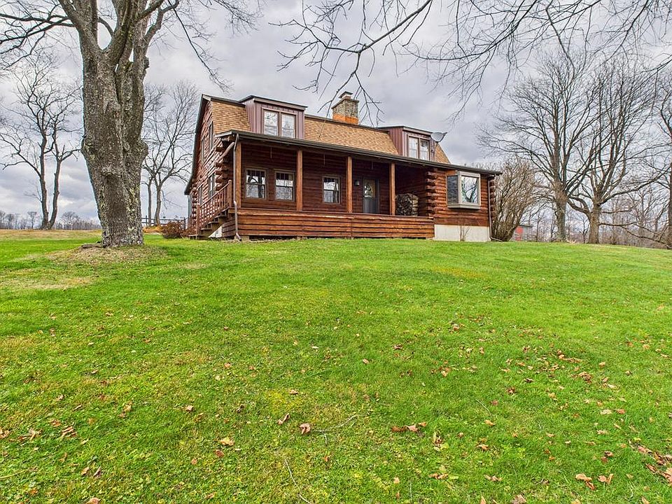 This beautiful cabin, sitting on 27+/- acres is located with great views in any direction. Perfect for farming, gardening, or pasturing animals. Living room has a cozy wood fireplace insert .Full basement with walk out access. Great home or cozy get away retreat. Awesome enclosed rear porch and a wonderful covered front porch both with incredible views. AND the Oil, Gas and Mineral right will transfer to the new owner with the purchase.