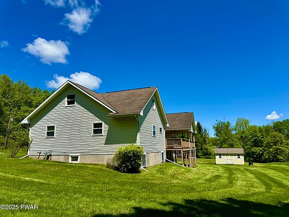 Welcome to this one of a kind Beautiful Brick-Faced Ranch Home nestled in Honesdale's most desirable neighborhoods!! Just a short walk to the Wayne Highlands School District and minutes from the heart of town for convenient shopping, dining, and entertainment. This spacious residence offers three large bedrooms, including a private primary suite with its own full bath and walk in closet. You'll love the generous living room / dinning area and cozy family room, perfect for relaxing or hosting guests. The updated kitchen with quartz countertops is a true highlight, featuring gorgeous finishes and breathtaking views. Step outside to a huge covered back deck overlooking a beautifully landscaped backyard--an ideal spot for outdoor dining or peaceful mornings. Complete with a full unfinished heated basement which has partial bathroom installed and high ceilings this can create a huge additional living space! The property also includes a paved driveway and two garages--a two-car garage and an additional one-car garage tucked underneath for extra storage or workshop space and large shed as well. Beautiful 1 acre lot so close to town yet you feel like you're in the country! This is truly an exceptional home on an unbelievable piece of property and location. Don't miss this rare opportunity! Call Today this property will not last long don't miss out!!